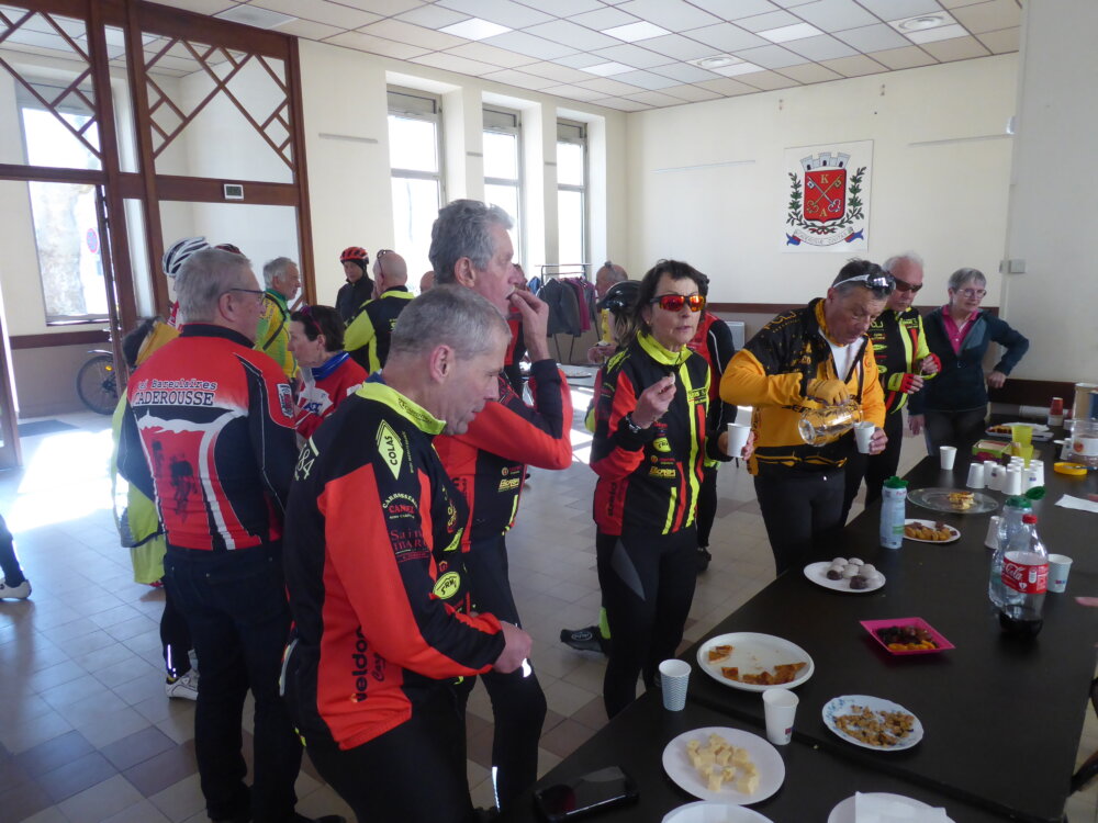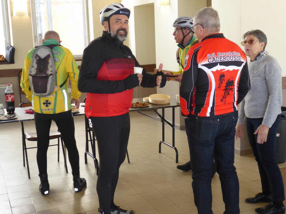 Après un premier essai en janvier que le mauvais temps nous avait obligé à différé, aujourd’hui c’était le bon jour. Certes il y avait un peu de Mistral mais pas suffisamment pour décourager les 110 participants de notre Point chaud. Nous remercions les 16 clubs qui sont venus se ravitailler dans notre village et félicitation à l’unique cyclo de Robion, le plus éloigné à nous rejoindre.