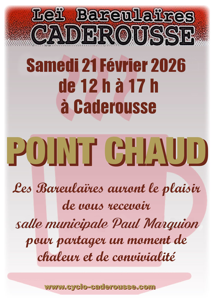 Réussite pour notre point-chaud du 20 janvier 2024. 130 pédaleurs dont 21 féminines venus de quatre départements ont bravé les froides températures de cette fin janvier. Le soleil était tout de même au rendez-vous et le Mistral a eu la gentillesse de se calmer…